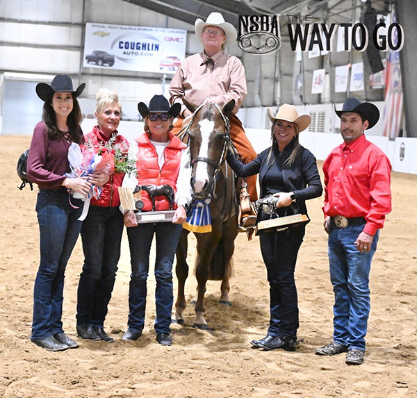Gerald “Jerry” Hathaway showed his wife’s horse, WalkTheLyne, to win the class. “I hadn’t been on a horse in about 20 years before going to Tulsa in August,” Gerry said. “I had team roped years ago, but I hadn’t been around horses until I met my wife.
