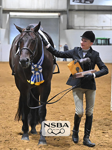 Chris Lagerblade showed Hank earlier in the Amateur Select Hunter Under Saddle and placed fourth. “I felt like I got him ready for Ryan,” laughed Chris. “Beth got him ready for me, and I got him ready for Ryan.”